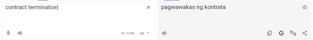 機械翻訳によるタガログ語(直訳):pagtatapos ng kontrata