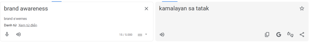 機械翻訳(誤訳):kamalayan sa tatak → 直訳すると「ブランドに対する意識」。